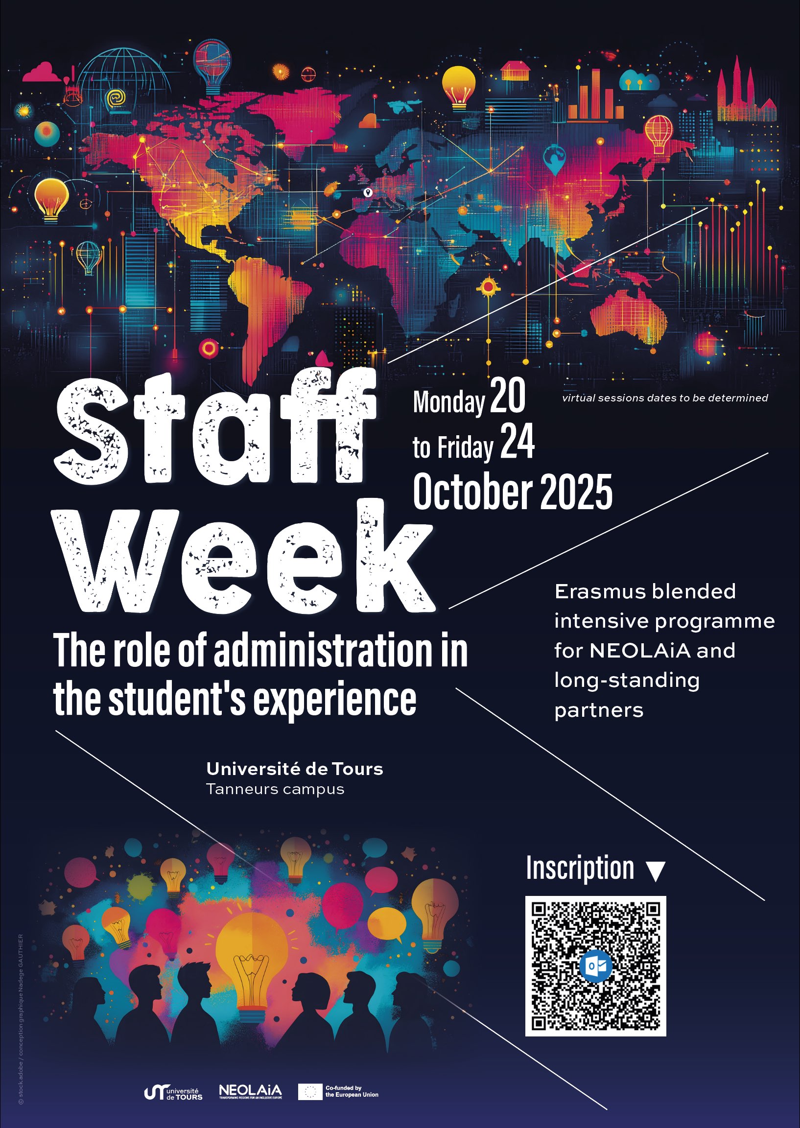 Il s'agit d'une semaine de formation, habituellement de 2 à 5 jours, à destination des personnels d'enseignement supérieur. Elle réunit des professionnel·les enseignant·es, chercheur·ses ou administratif·ves, provenant de diverses universités autour d'une thématique commune (par exemple : une staff week sur les méthodes pédagogiques innovantes) ou d'un domaine de métiers (par exemple : une staff week dédiée aux personnels des bibliothèques universitaires). Les universités NEOLAiA se concertent pour proposer une offre de staff weeks attractive répondant aux besoins des réseaux de personnels existant dans notre alliance.